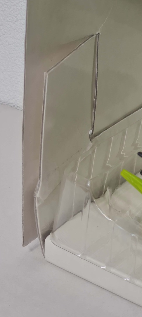 1 flap van de doos is geplakt.